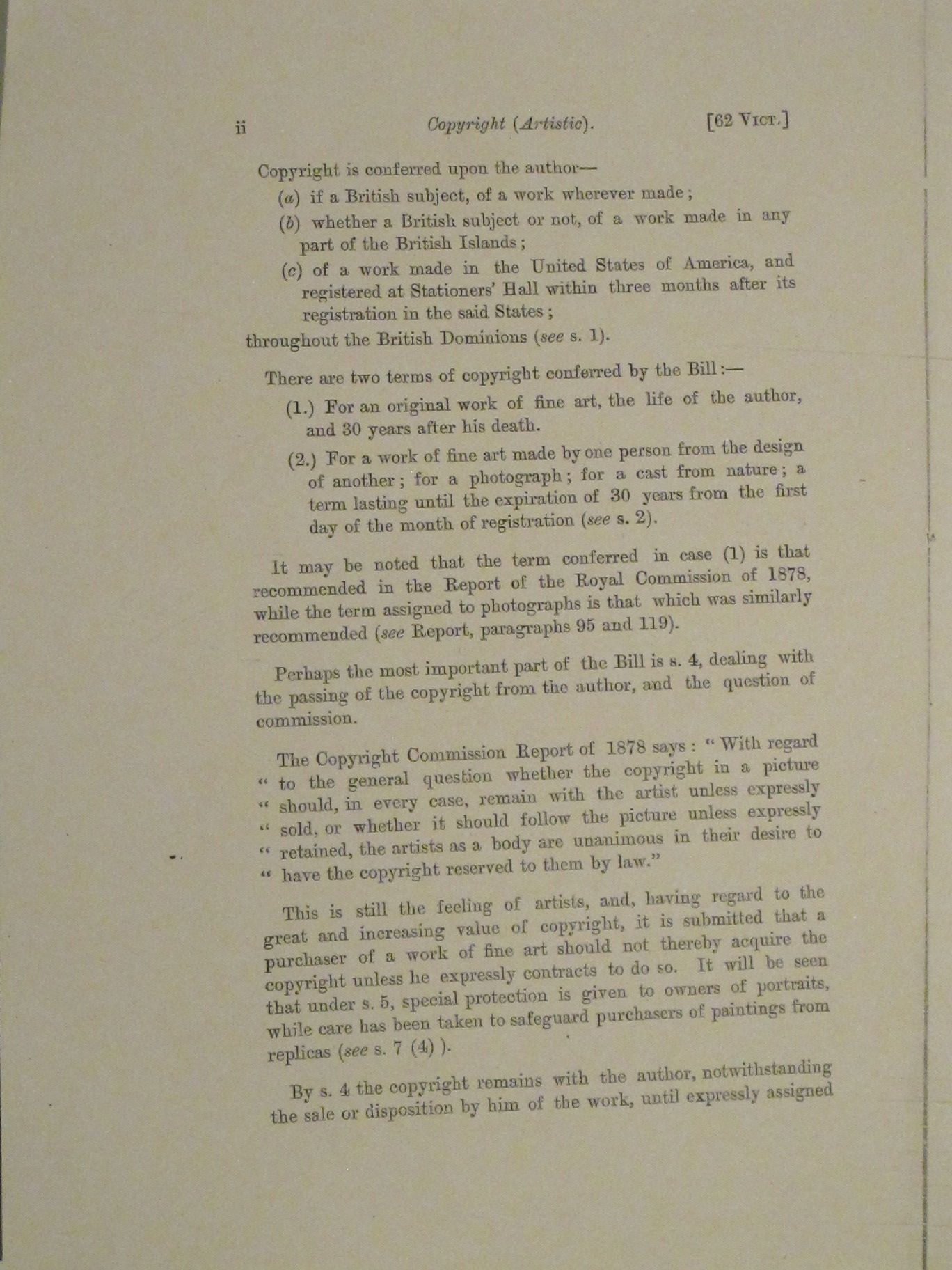 Artistic Copyright Bill, London, London (1899), Primary Sources on Copyright (1450-1900), eds L. Bently & M. Kretschmer, www.copyrighthistory.org