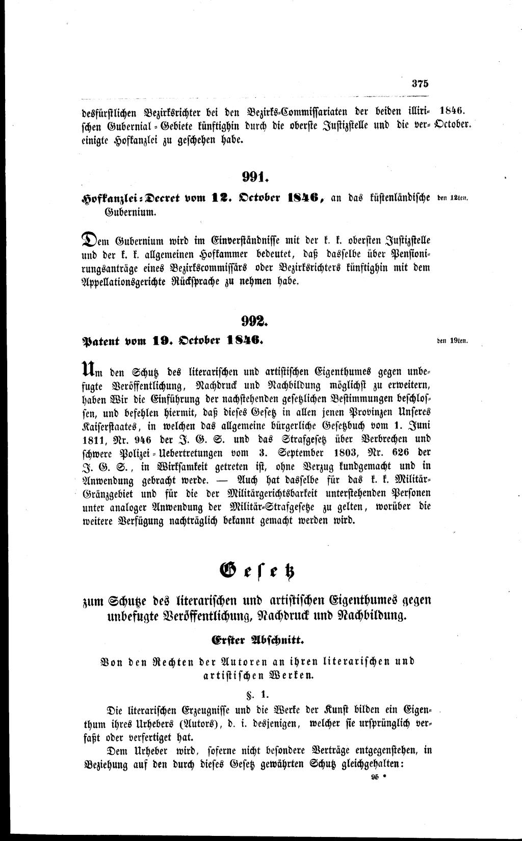 992.Imperial Patent of 19 October 1846.In order to extend as far as possible the protection of literary