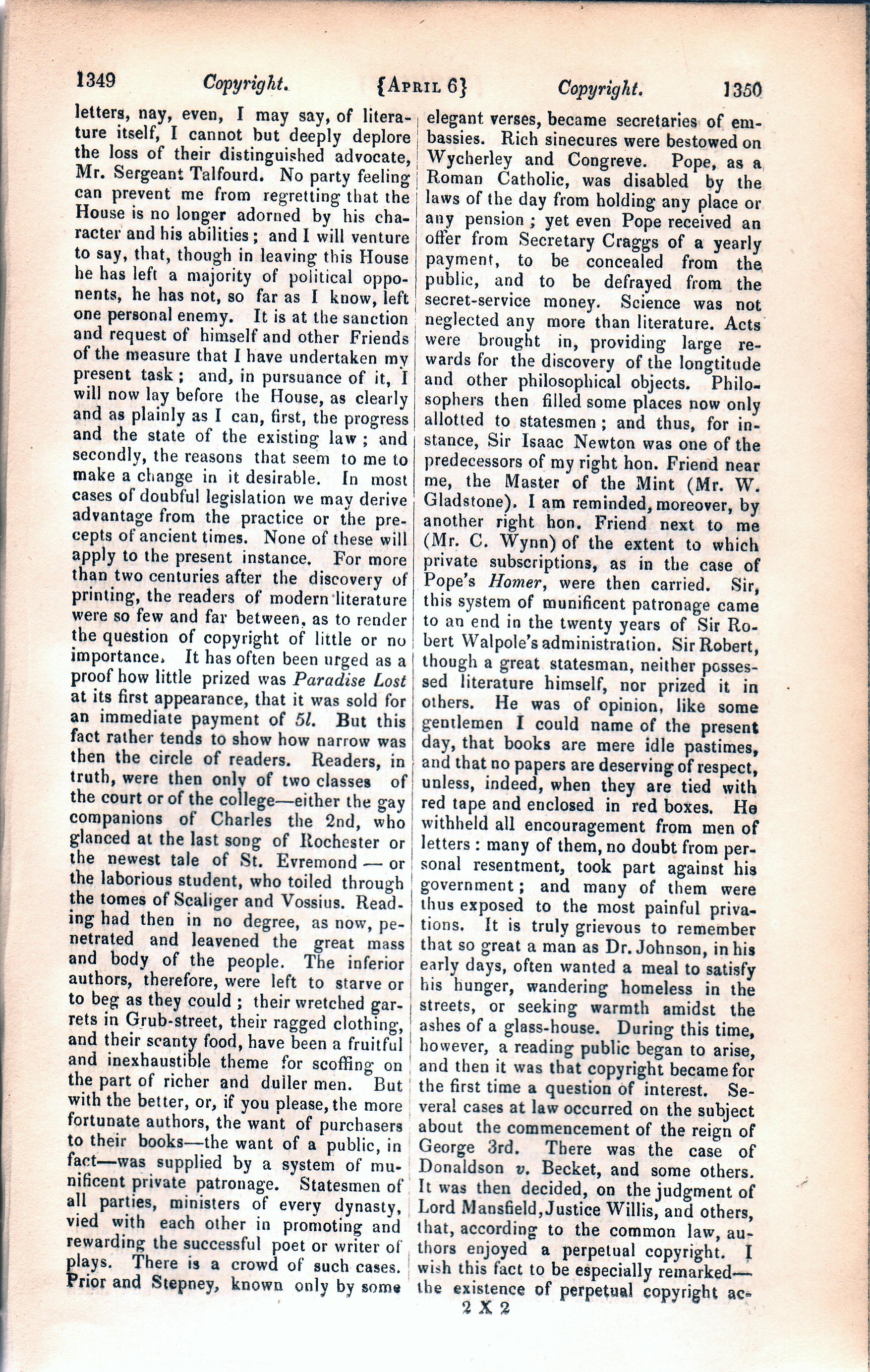 Parliamentary Debates on the Copyright Act (6 April), London (1842)