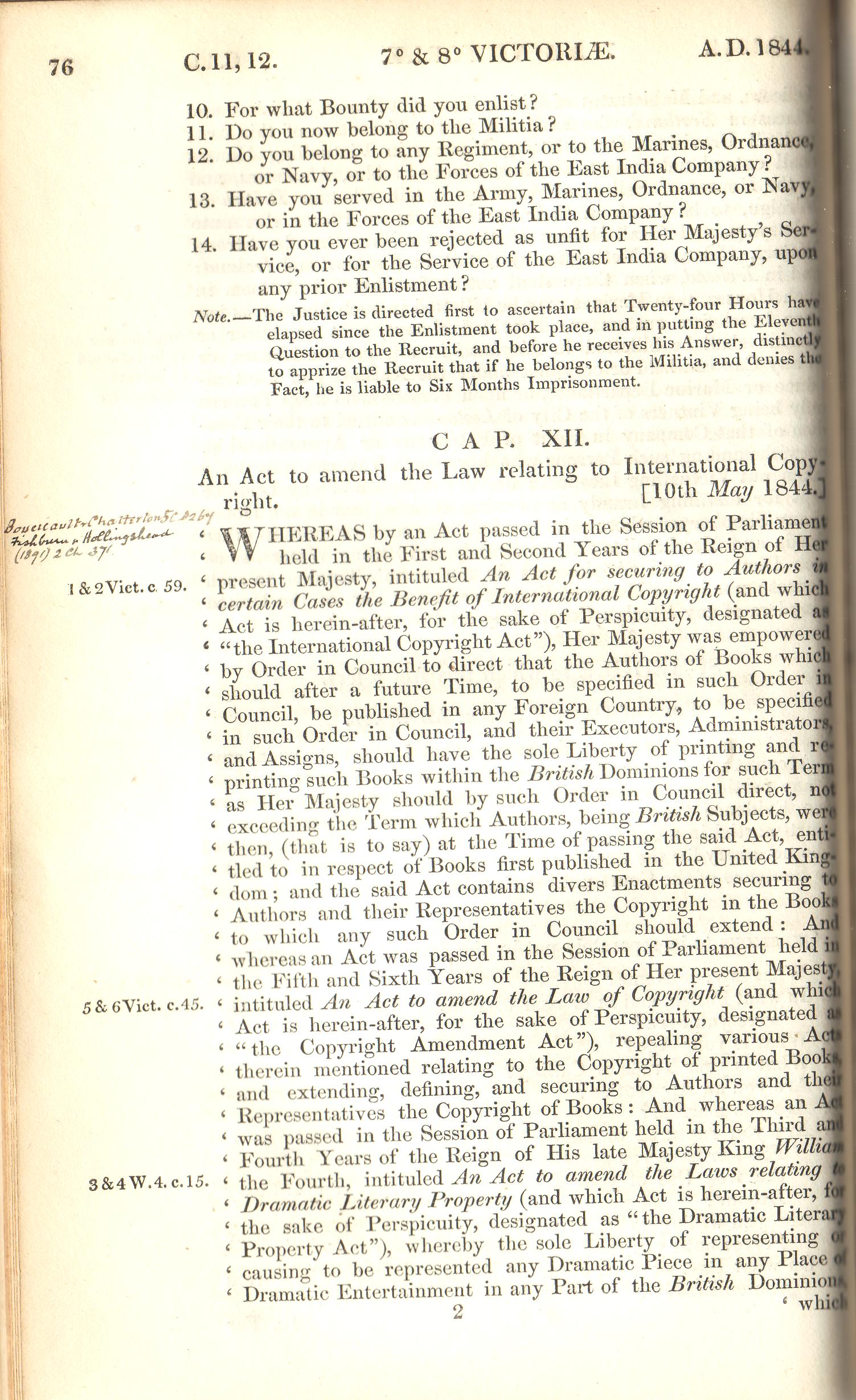 International Copyright Act, London (1844), Primary Sources on Copyright (1450-1900), eds L. Bently & M. Kretschmer, www.copyrighthistory.org